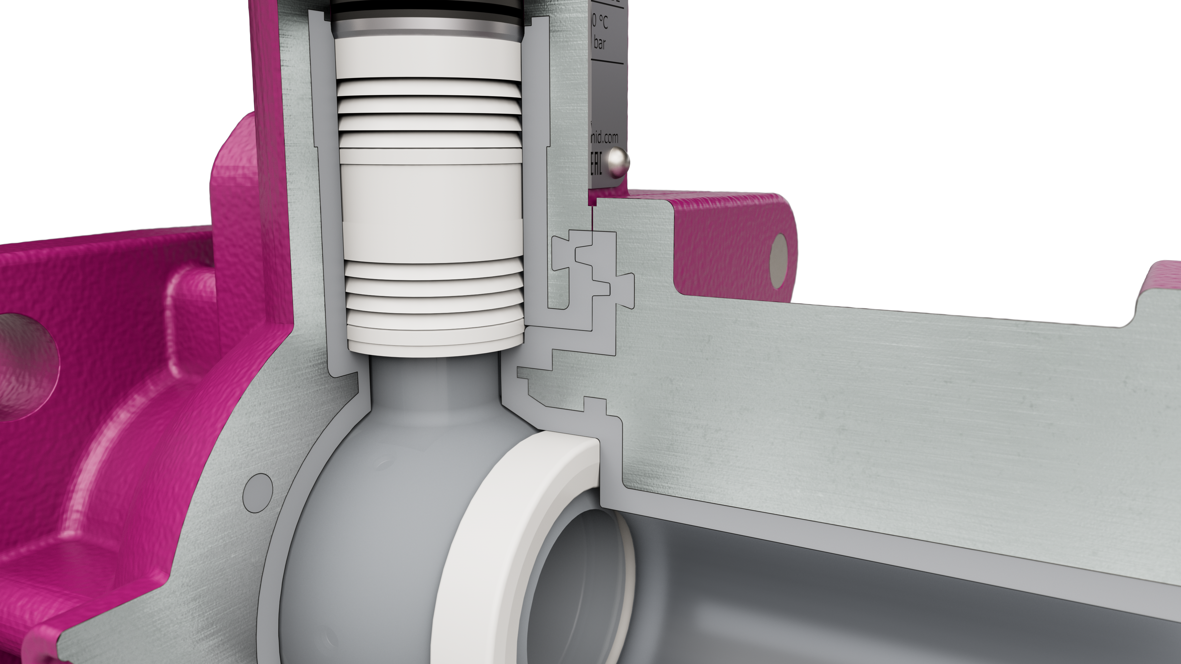 Die einzelnen V-förmigen PTFE-Ringe in den Dichtpaketen sorgen für eine zuverlässige Abdichtung der Kugelwelle im Gehäusehals und ermöglichen so einen Anschluss zur Leckageüberwachung über den bereits kleinsten Leckagen frühzeitig erkannt werden können
